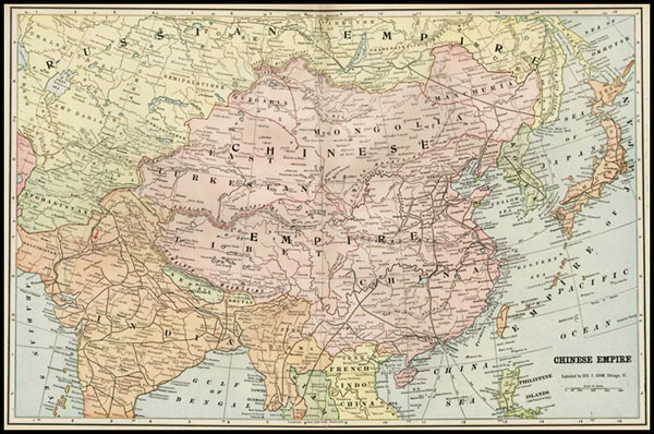 Chinese territory in the World map Cram Atlas, George F. Cram, Chicago, US (1899)