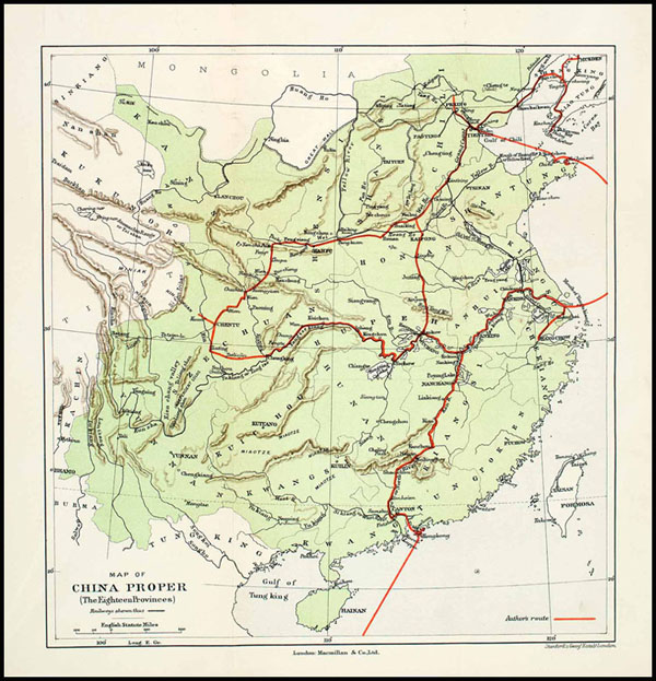 Chinese territory in the World map China Proper, Clive Bigham, Macmillan, London, England (1901).