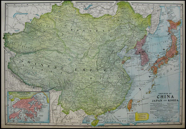 Chinese territory in the World map China, Japan and Korea, Martin Miller, Chicago, US (1904)
