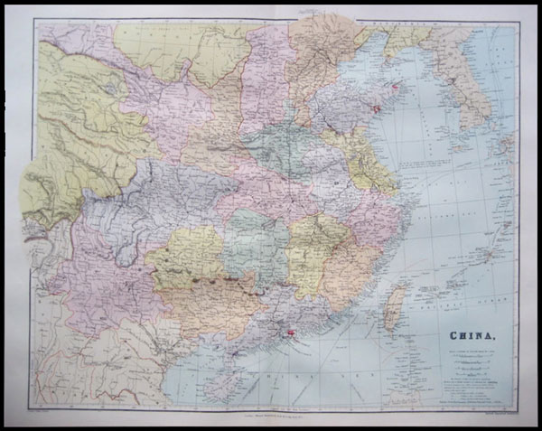 Chinese territory in the World map Universal Geography, Edward Stanford, London, England (1904)