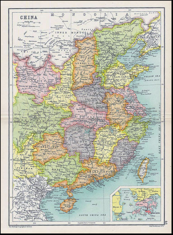 Chinese territory in the World map Cassell's Atlas, Edinburgh Geographical Institute, London, England (1910)