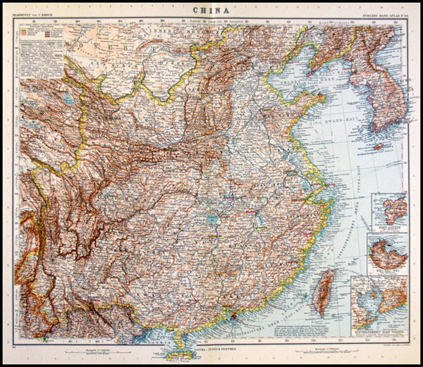 Chinese territory in the World map Stieler's Hand Atlas, Gotha, Germany (1912)